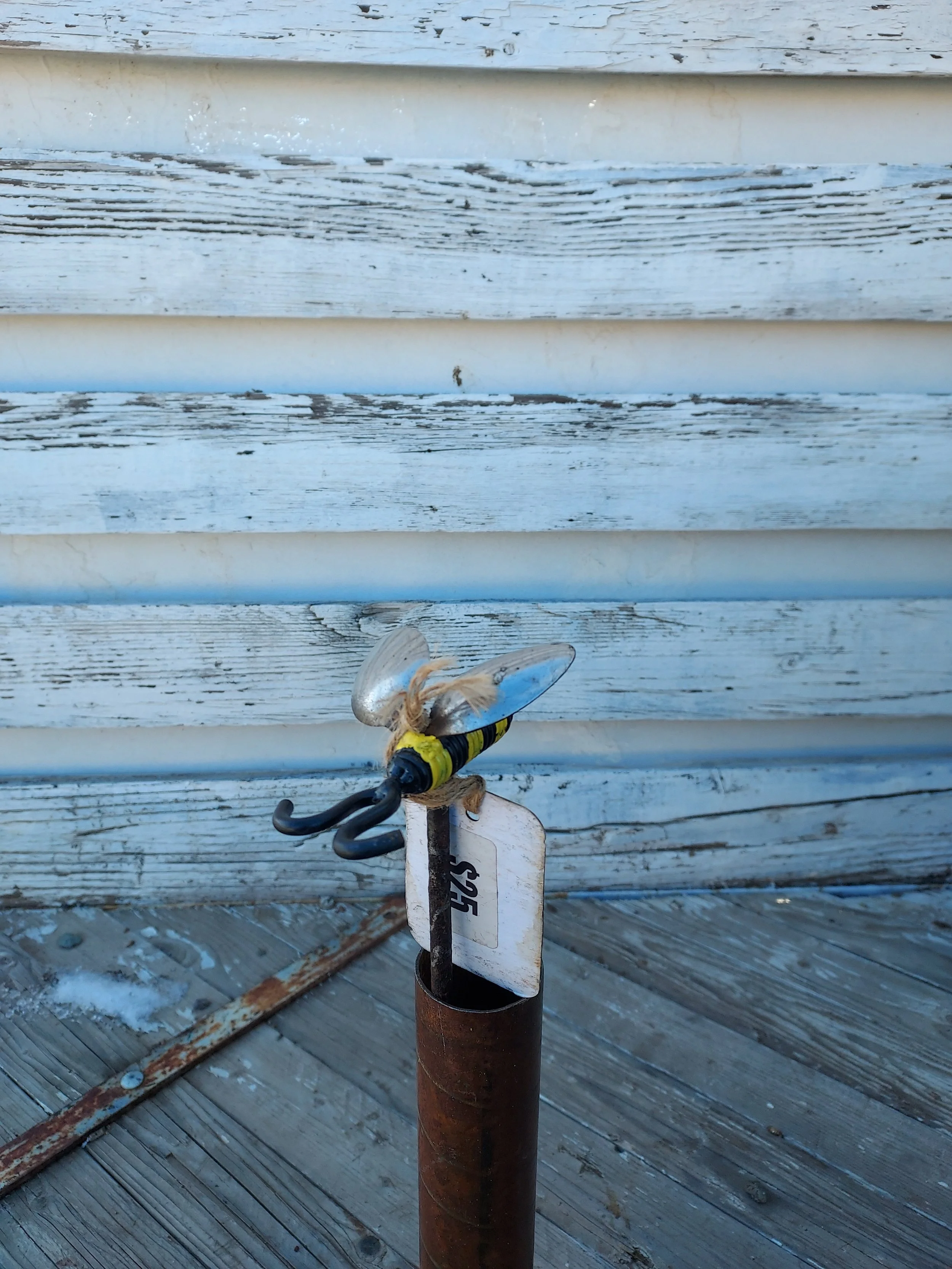 #VJ'sUpcycledCreations #yardart #metalart #zeroscaping #gardenfriend #recycledmetal